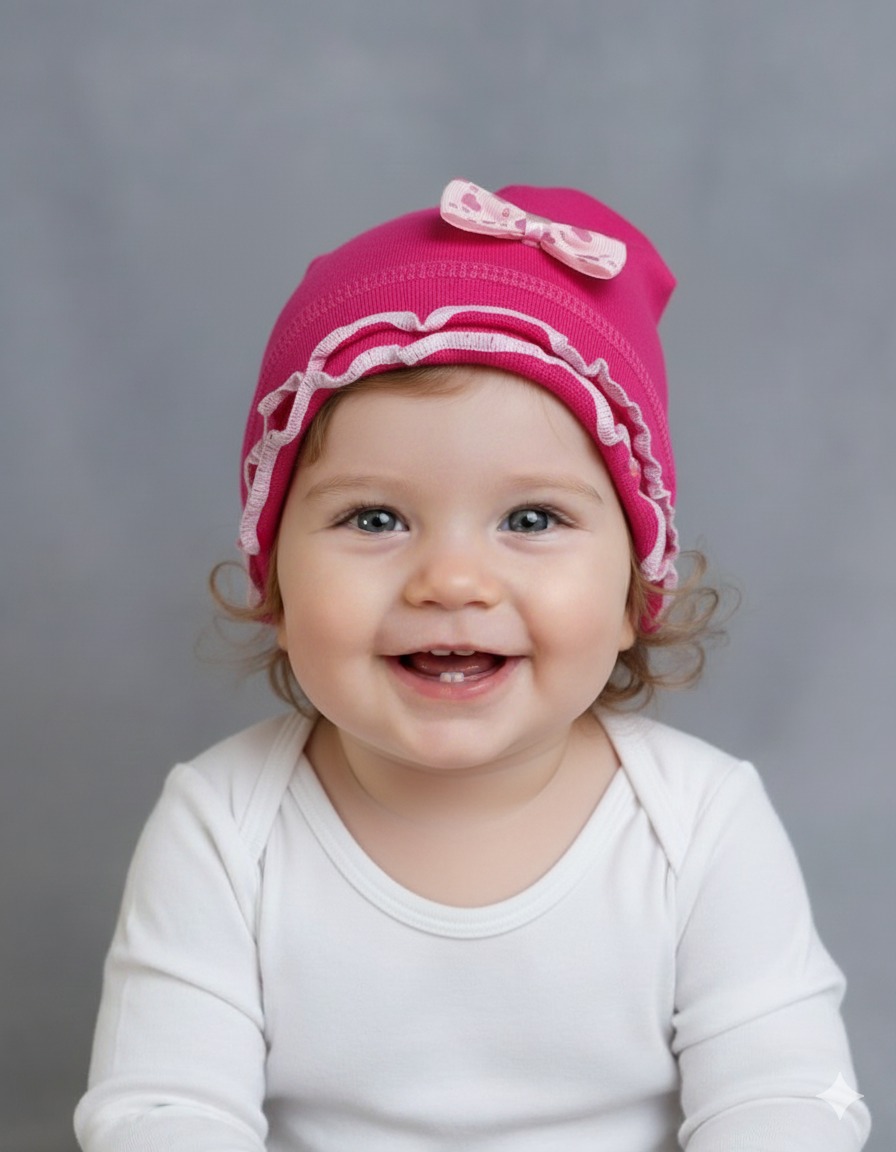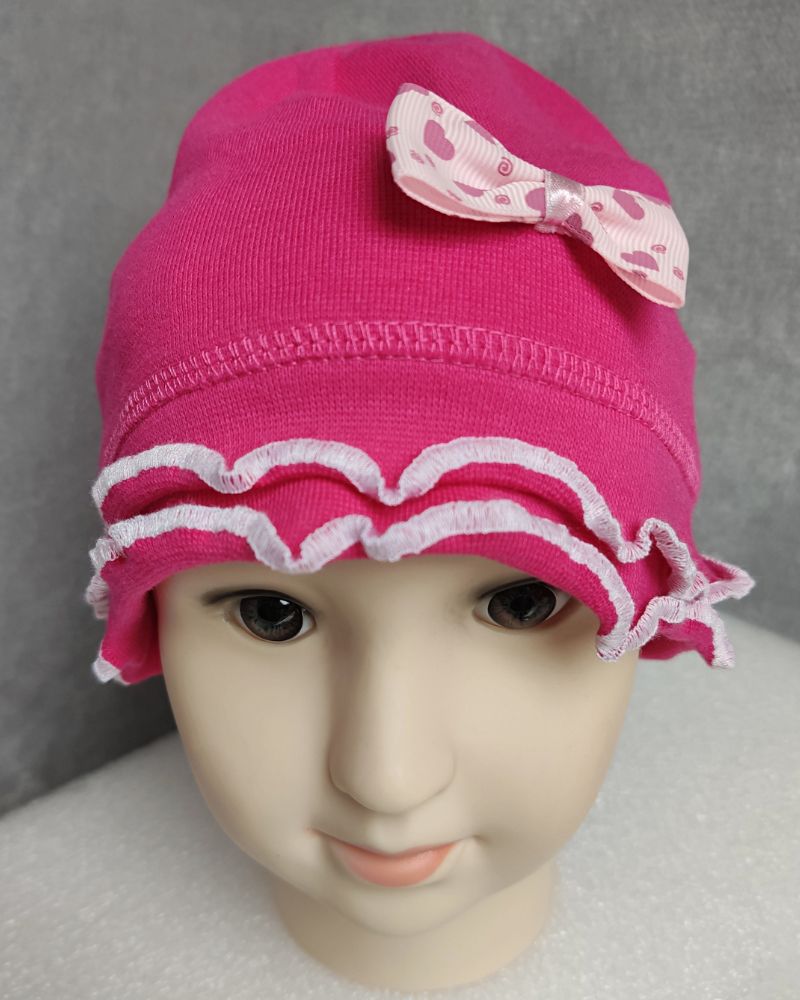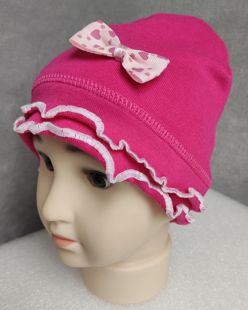 Czapka bawełniana falbanka z kokardą-ciemny róż