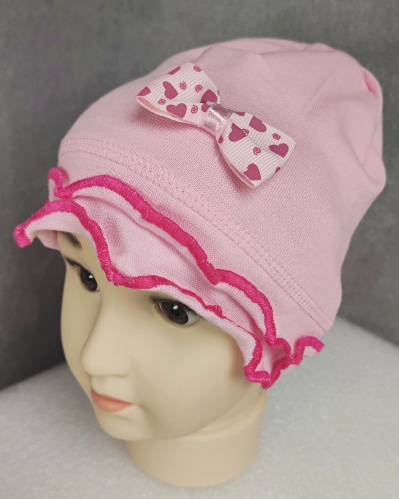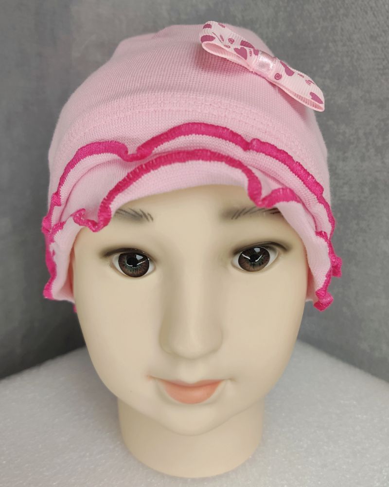 Czapka bawełniana falbanka z kokardą-jasny róż