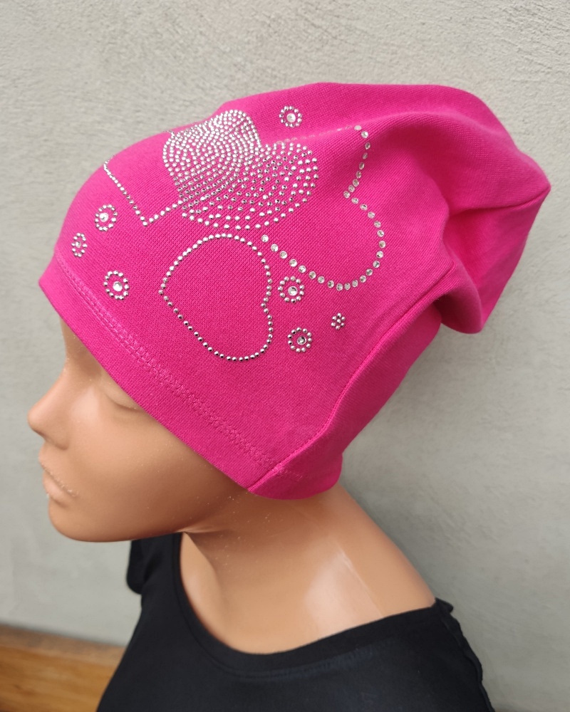 Czapka w serduszka-malinowy