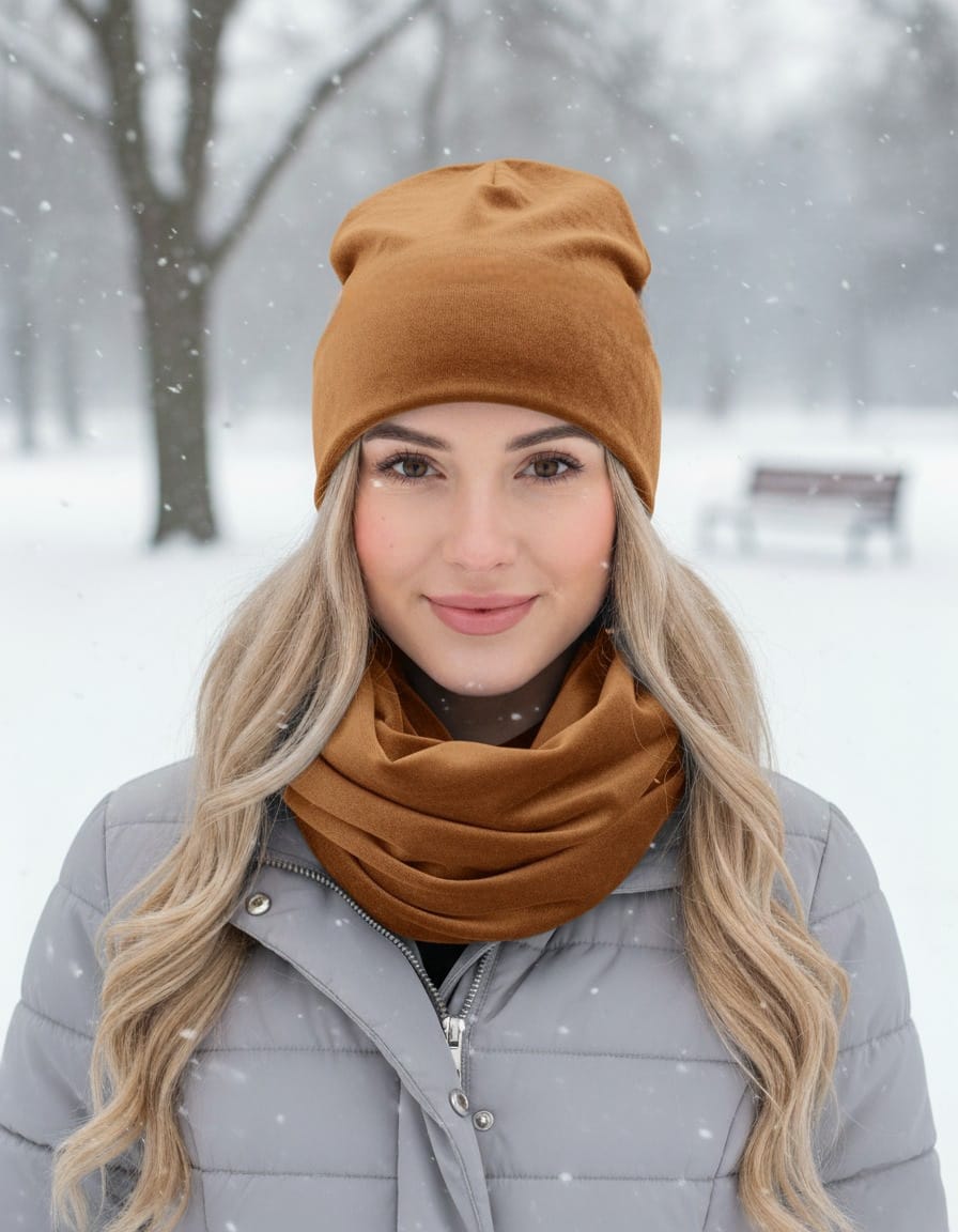 Komplet damski welur- brązowy