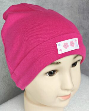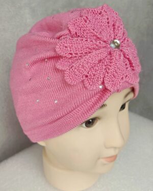 Szara czapka z fioletową kokardą
